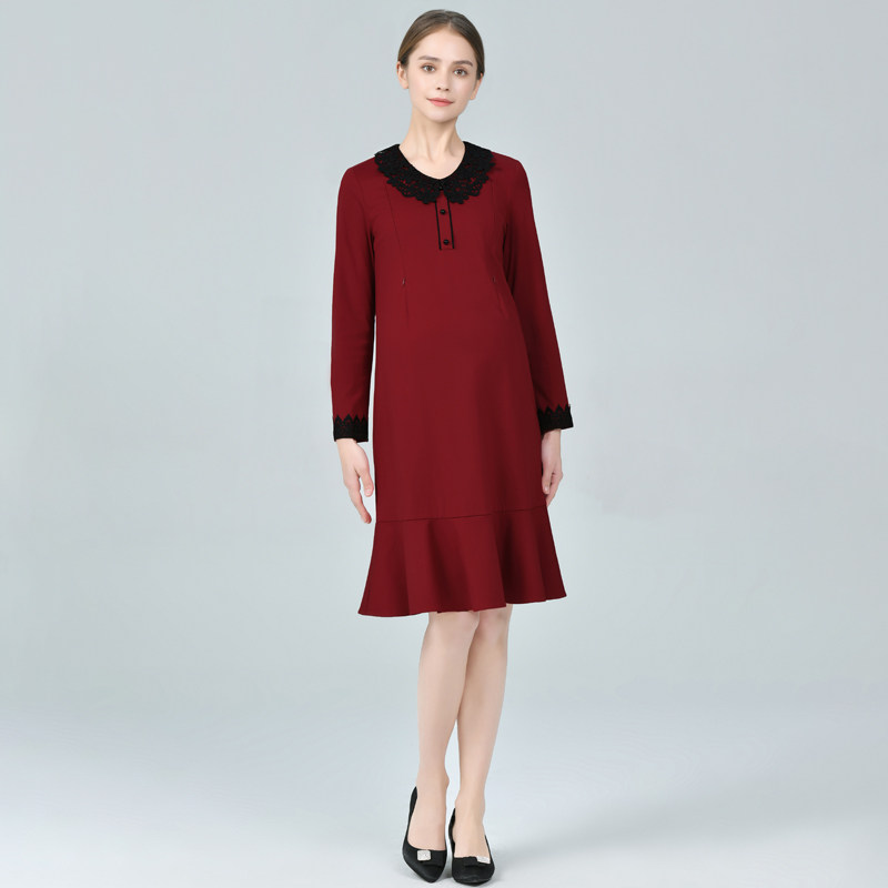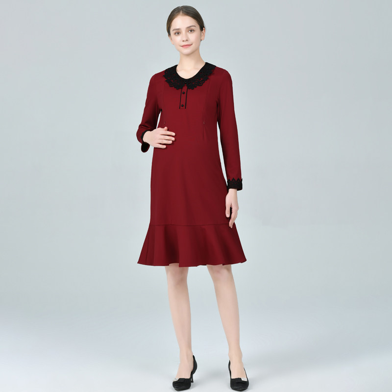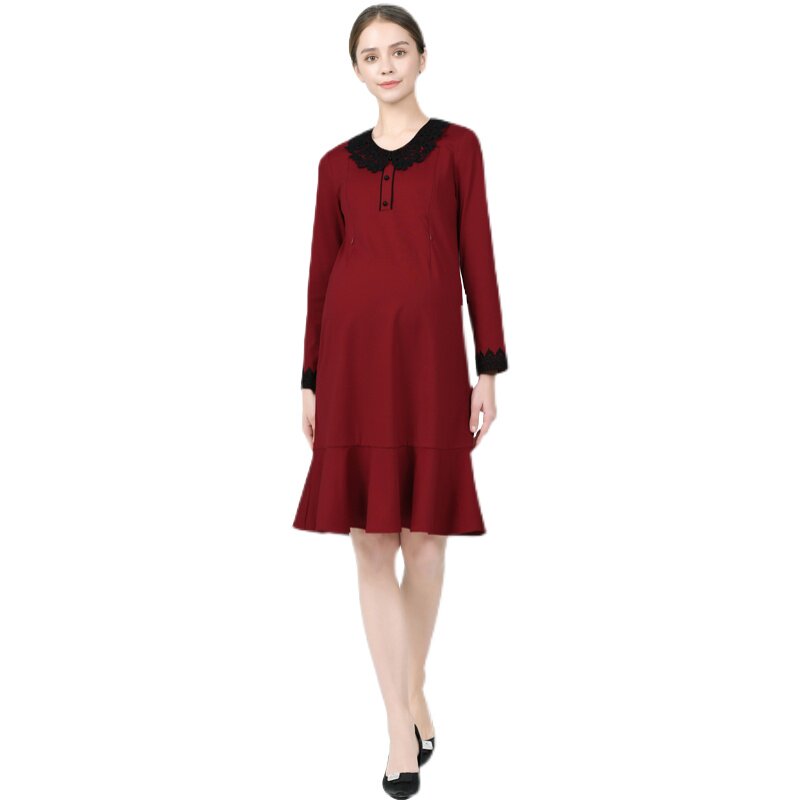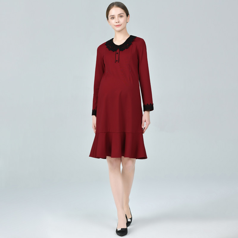Breastfeeding pregnant women fashionably wine red dress loose large size fish tail dress during pregnancy