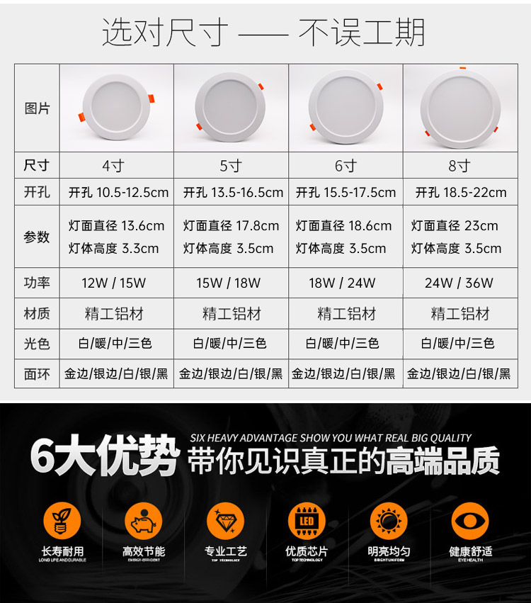 Aluminum 2 inch 3W single color aluminum 2 inch 3W three-color aluminum 2 5 inch 5W single color aluminum 2 5 inch 5W three color aluminum 3 5 inch 7W single color aluminum 3
