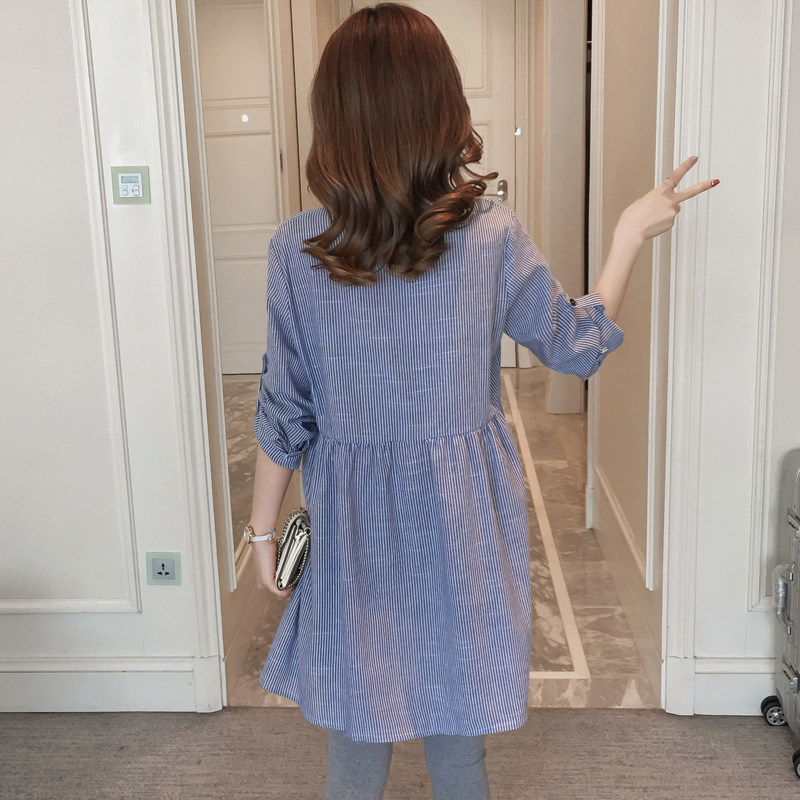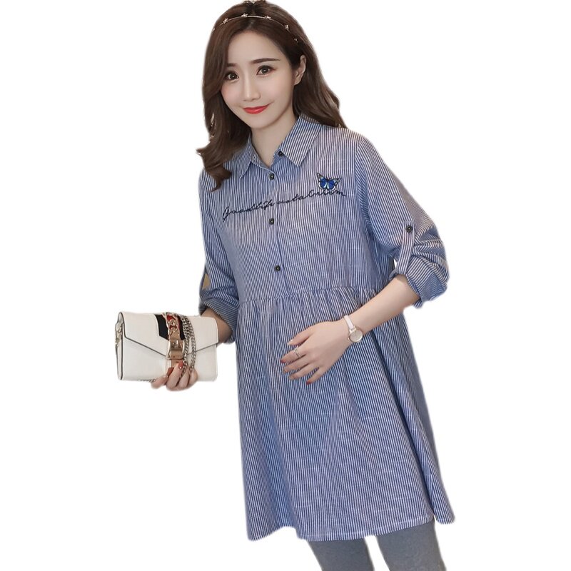 Pregnant women dress in autumn 2021 new pregnant women dress fashion long striped shirt outfit two pieces