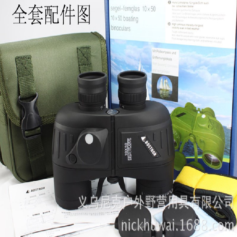 High-HD nautical 10X50 with azimuth compass micro-light night vision waterproof floating water double-cylinder telescope outdoor
