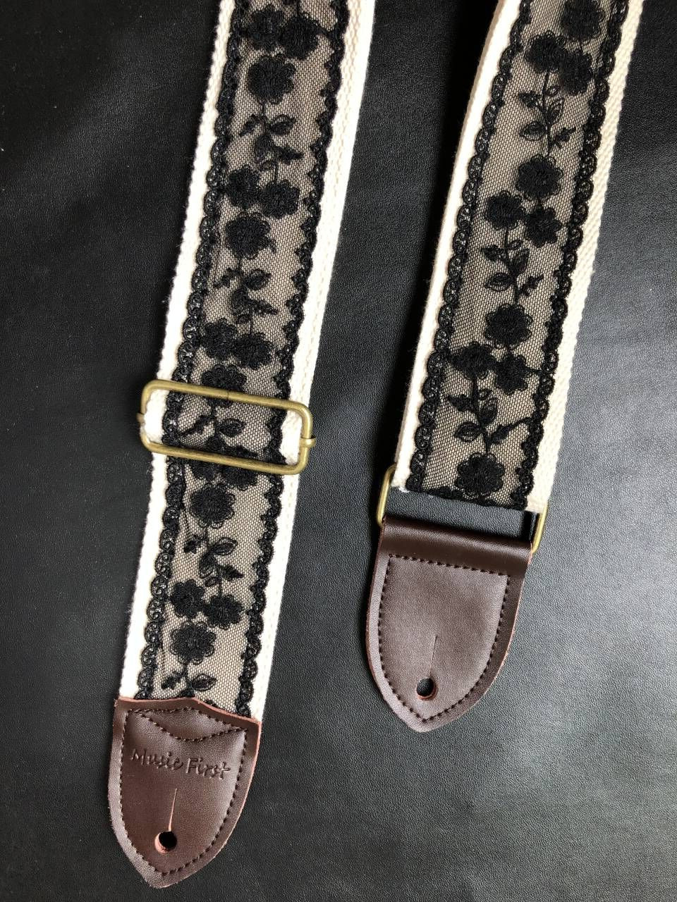 Original pure handmade 5CM cool and beautiful black lace electric thick guitar belt bass belt Guitar strap