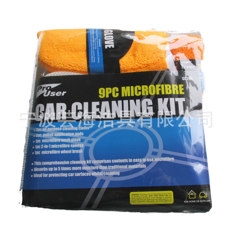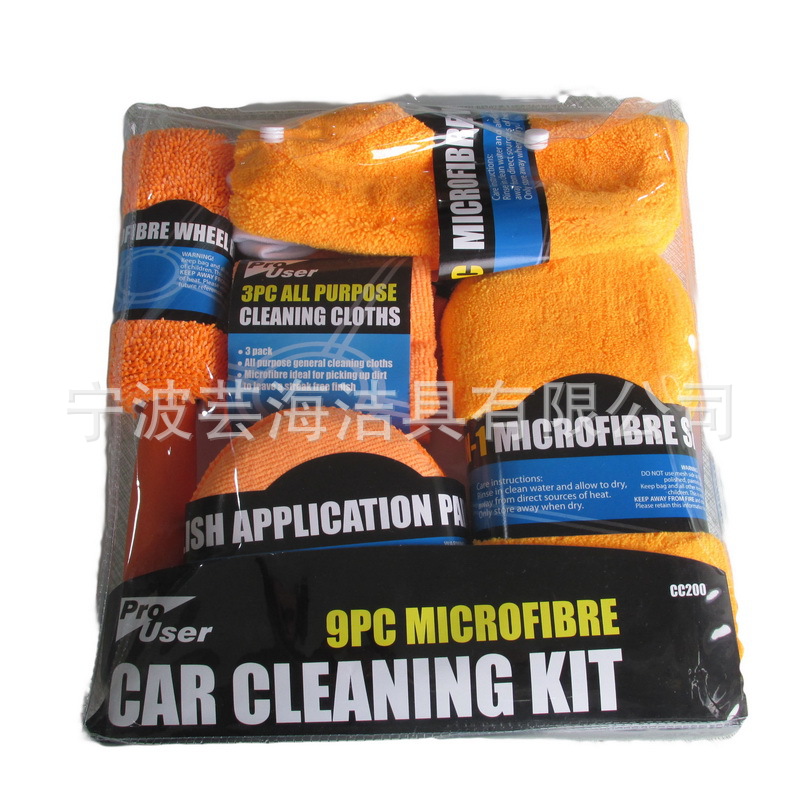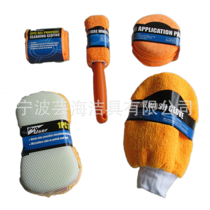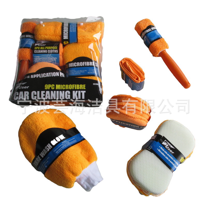 Car Wash 9 Pieces Suit Car Cleaning Supplies Beauty Hub Brush Sponge Block Polished Waxing Cart Towel