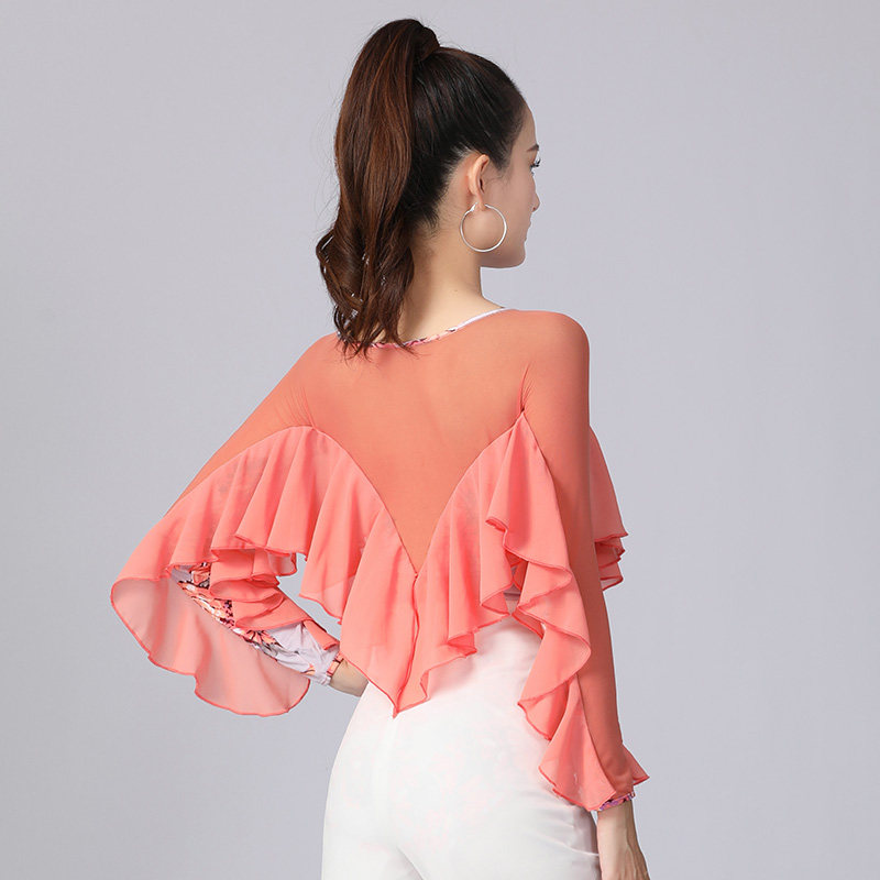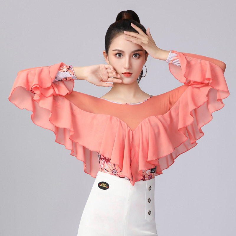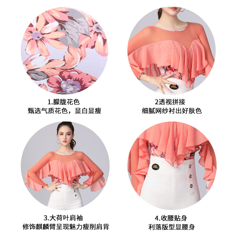 Dambao Roo 2024 New Large Lotus Leaf Side One-piece Clothing Orange Fashion High-end Latin Dance Practice Lady Blouse-Taobao