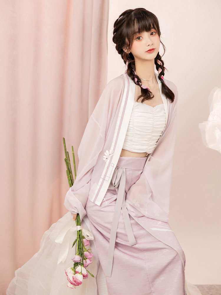 Chi Xia Summer: Monet's straight-sleeved double-breasted blouse and two-piece skirt made in the Song Dynasty Original improved Hanfu women's Chinese style summer