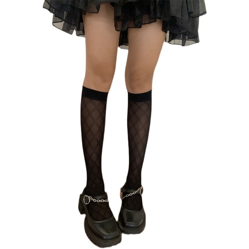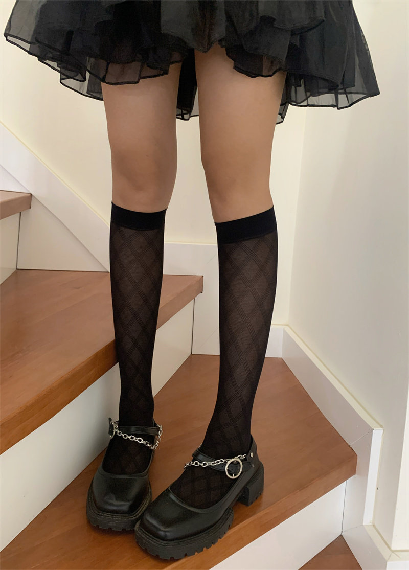 Lolita Retro Diamond Black Mesh Girl College Skin Slipper Black Filament in the wind of JK College