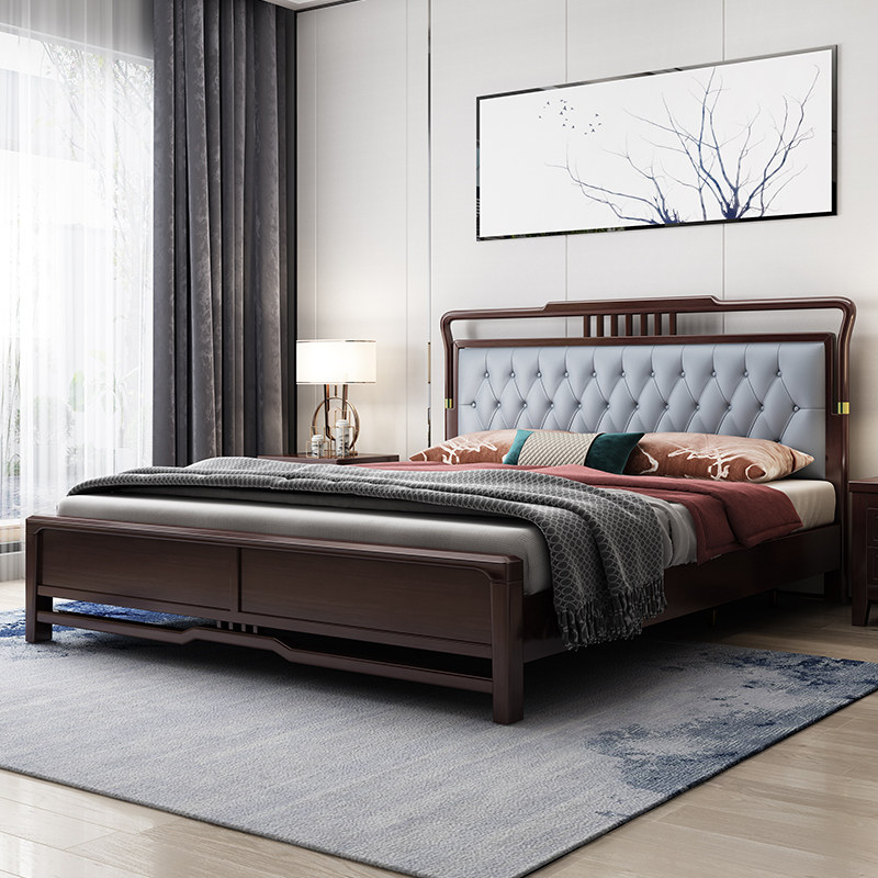 New Chinese-style solid wood bed New Chinese-style bed bedside table*1New Chinese-style bed bedside table*2