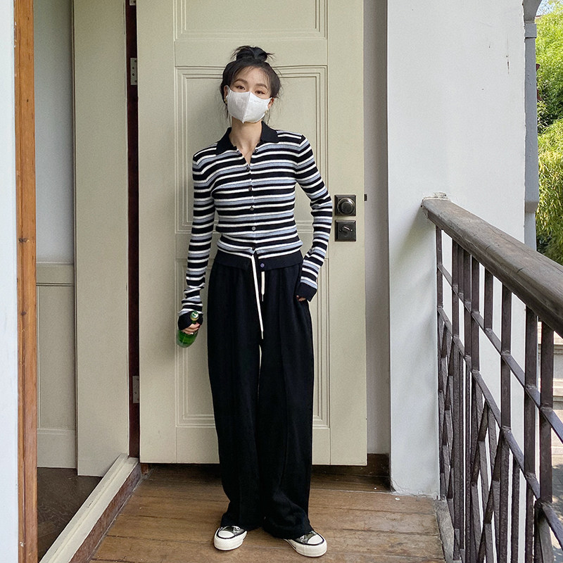 Jinsu One Leisure Pants Women 2021 Fall Han Edition high waist slim straight tube pants pure color and long pants tide