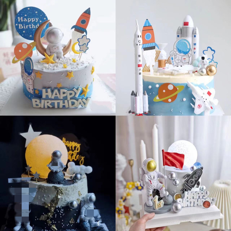 Ten astronaut cake decoration fittings little boy space shuttle rocket decoration lunar lamp plugins