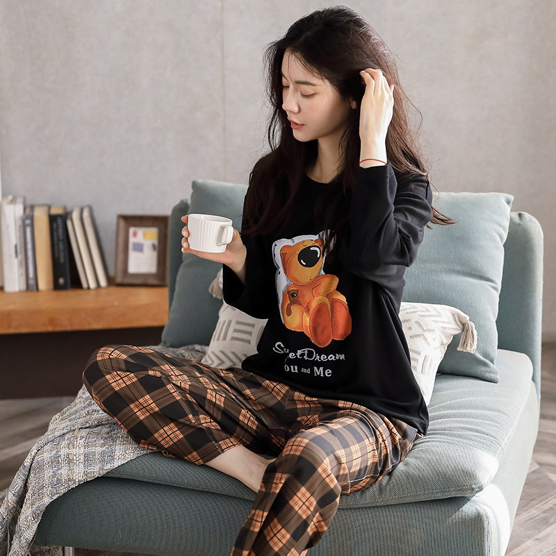 Long-sleeved pajamas women's spring and autumn pure cotton 2021 new net red Korean series cotton thin section cute home service suit