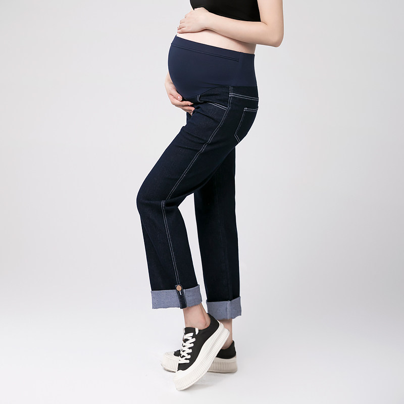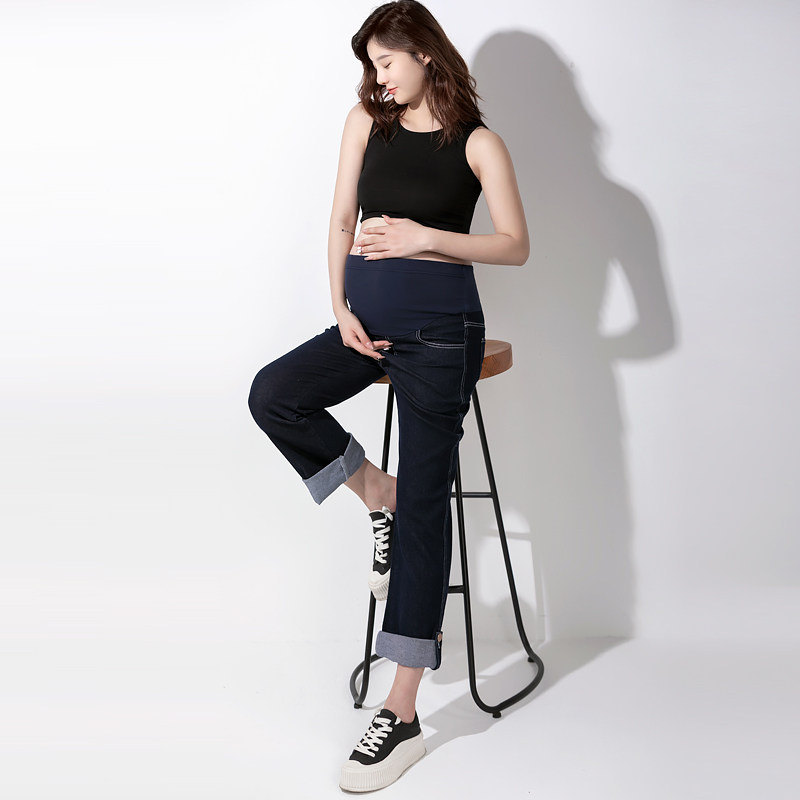 (Broken code clearance) maternity pants spring and autumn outerwear straight-leg pants look thin early elastic belly-supporting denim trousers