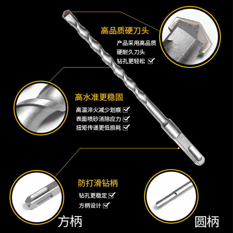 Fanglong extended electric hammer drill bit impact drill bit 350mm extended drill bit through the wall square handle round handle concrete punching