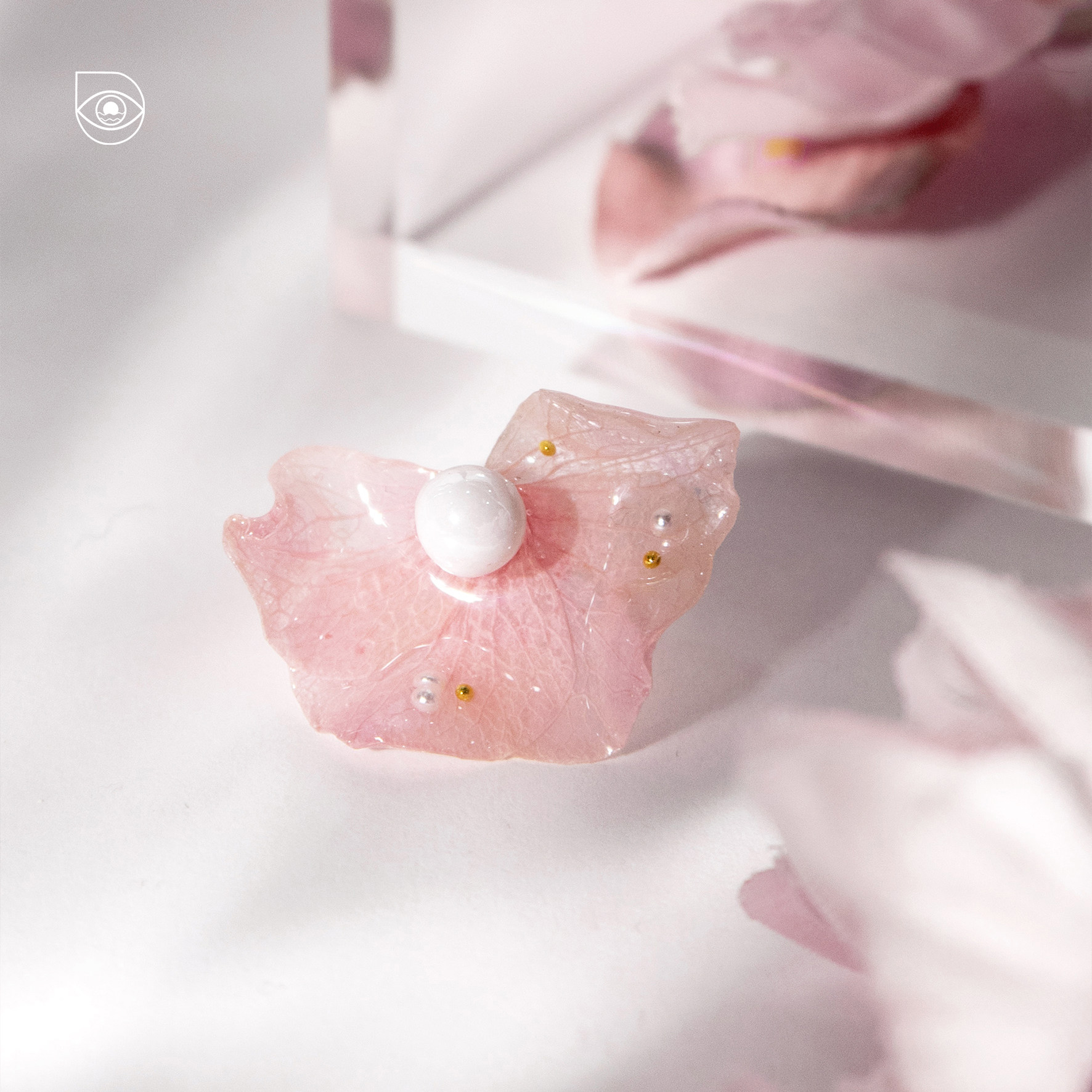 Xizhi Blossom Series Romantic Immortal Flower Real Flower Drop Glue Handmade Pink Hydrangea Original Summer Earrings