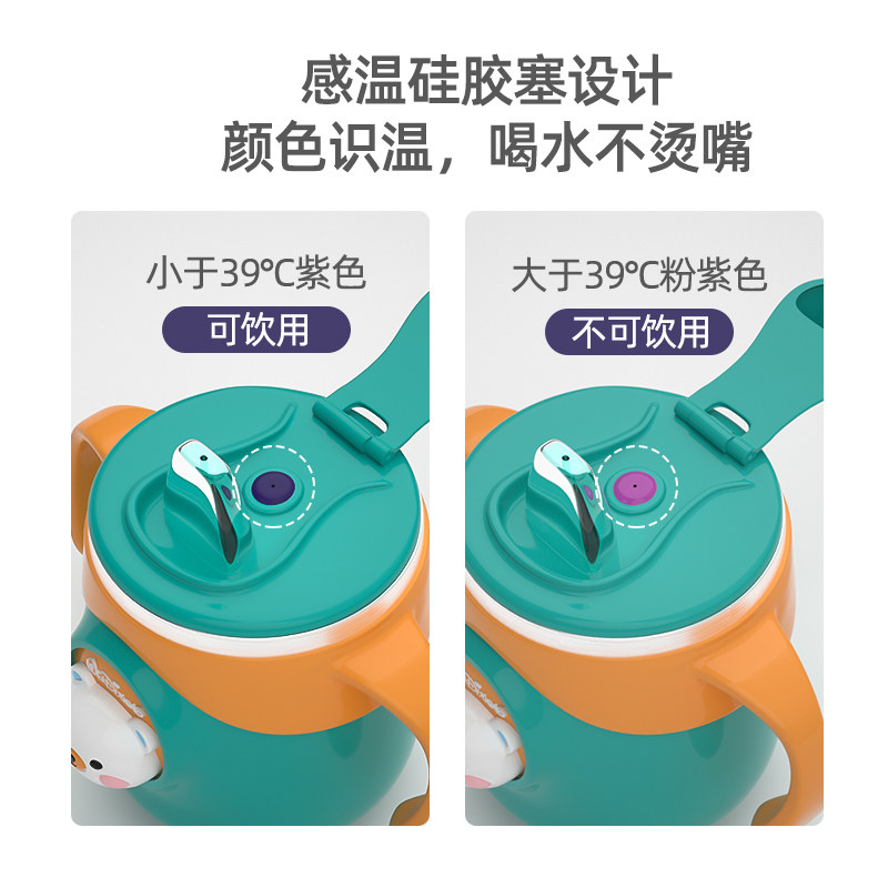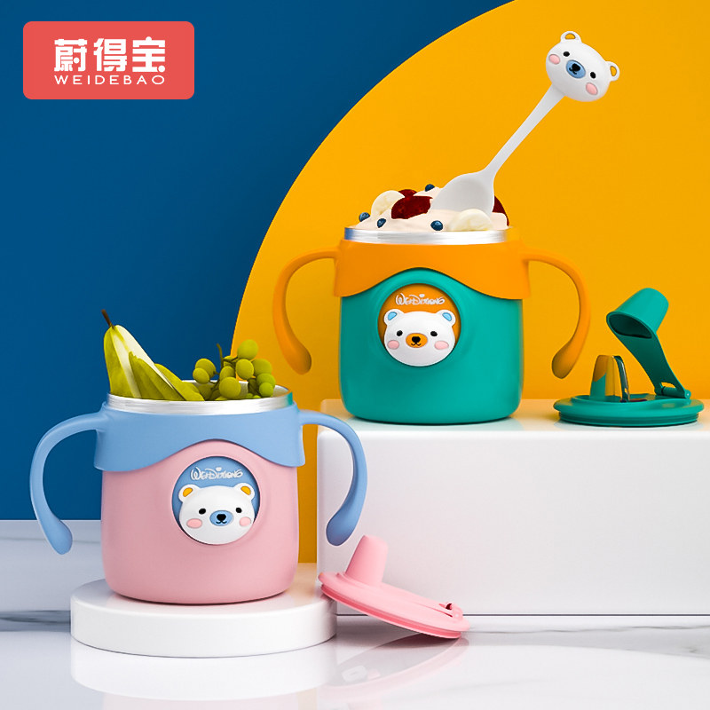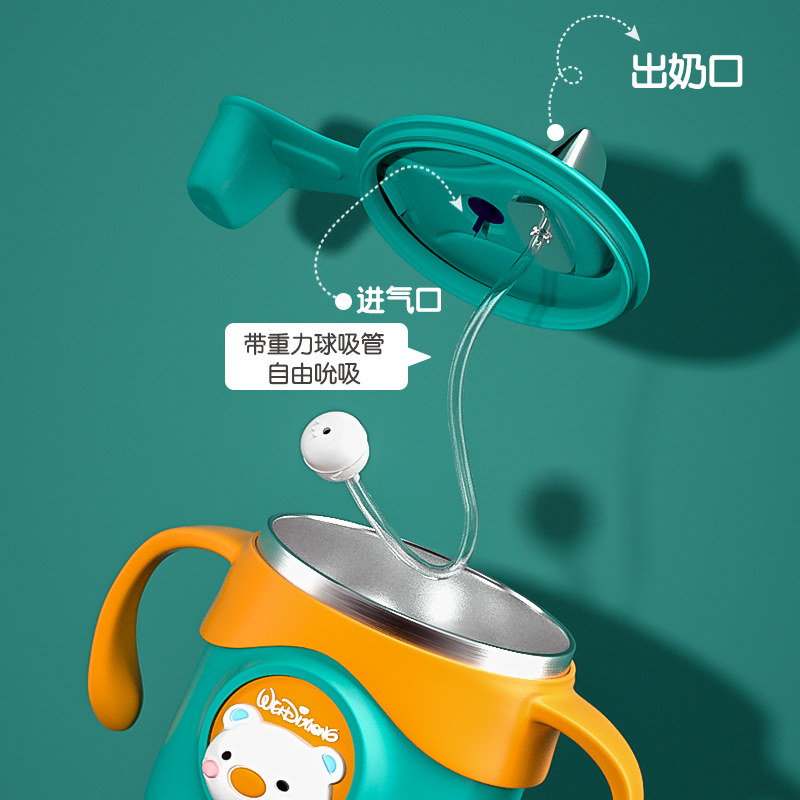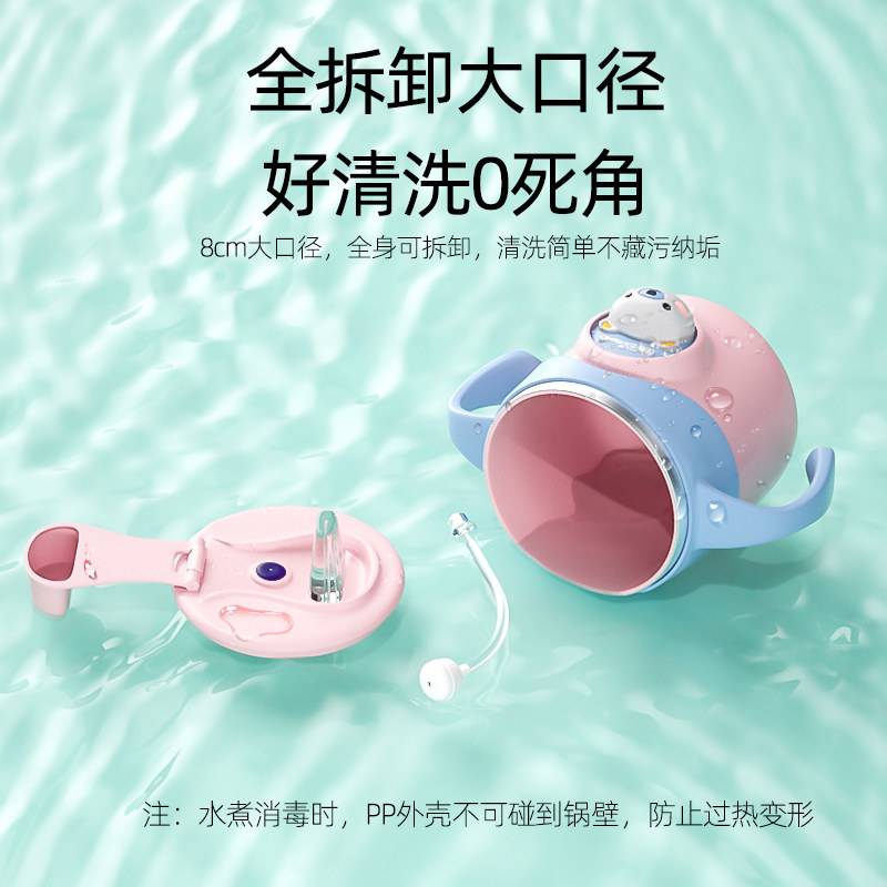 Children's milk cup with 6 months baby duckmouth cup with stainless steel temperature anti - wrestling tube drinking cup