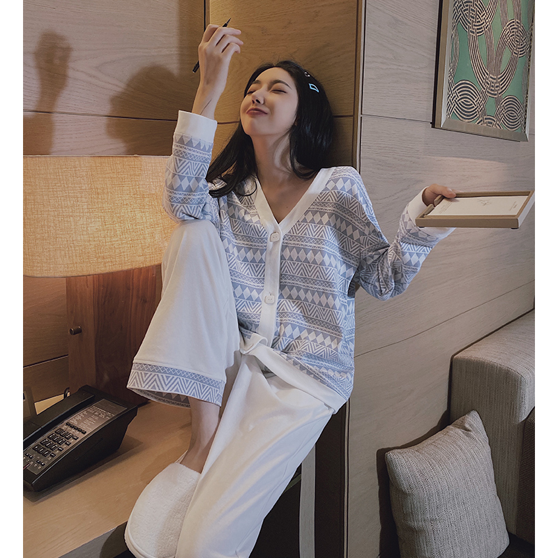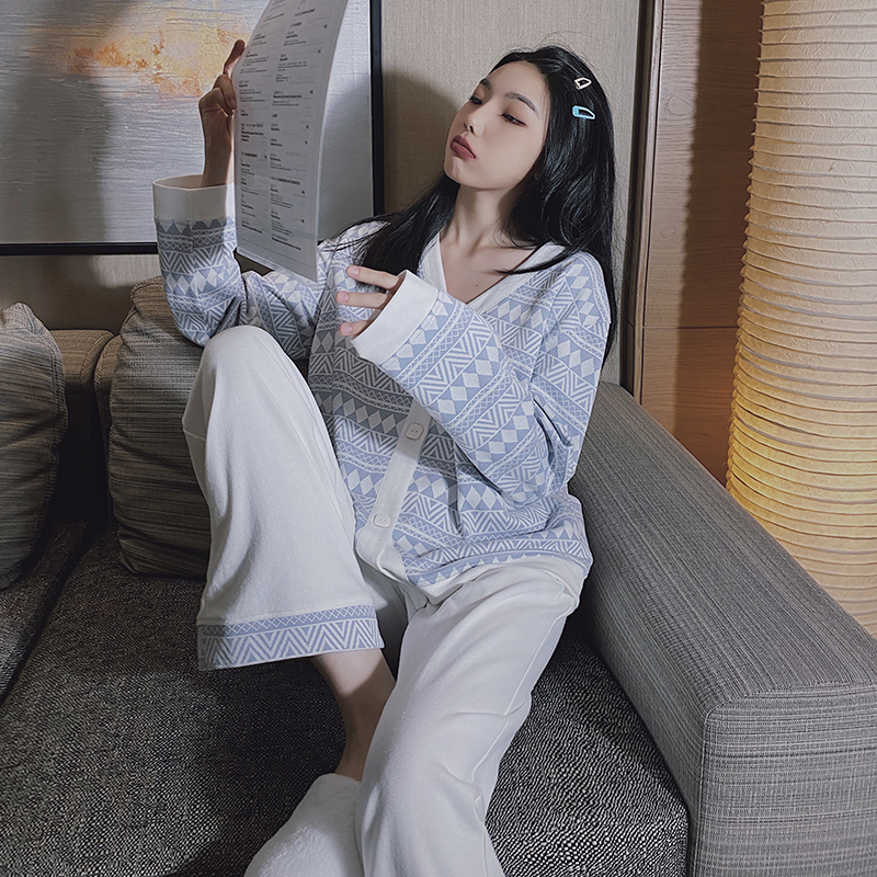 Home Deer Deer Spring Autumn Season 2021 New cardiovert cotton pyjamas women's fashion Two sets of home clothes execs out of the door