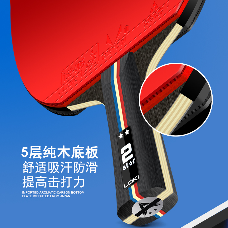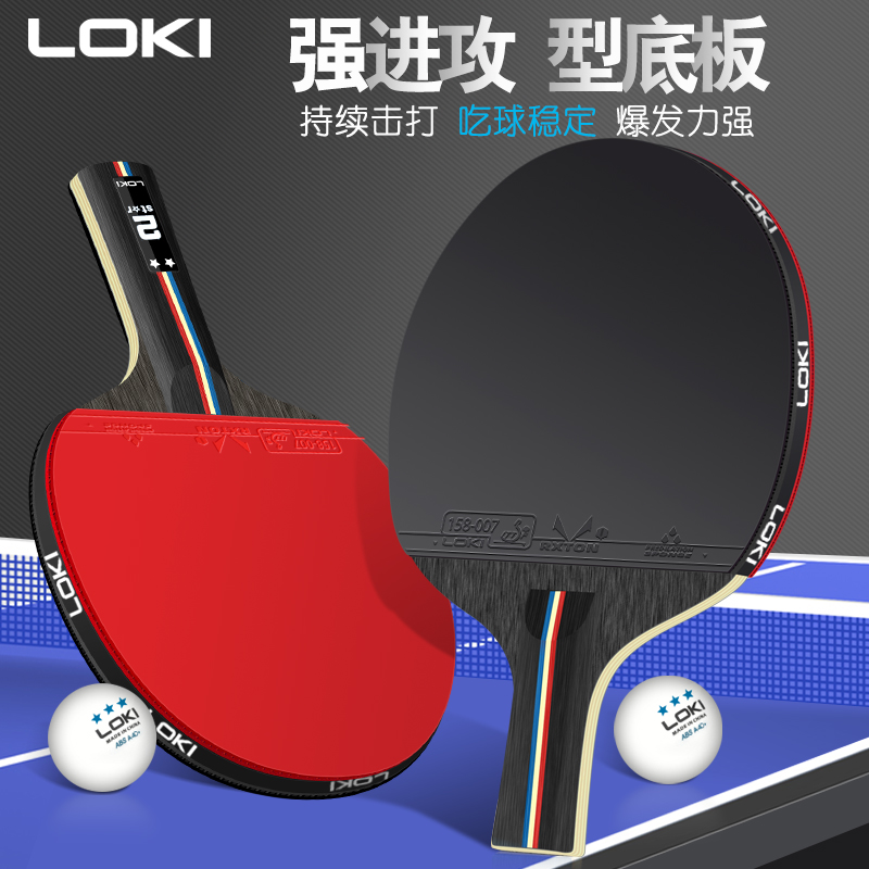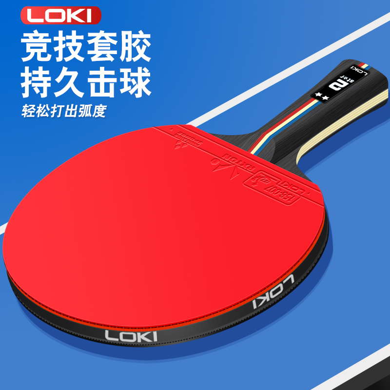 LOKI Thor table tennis racket double shot student children's table tennis racket high elastic two-star straight horizontal beginner professional level