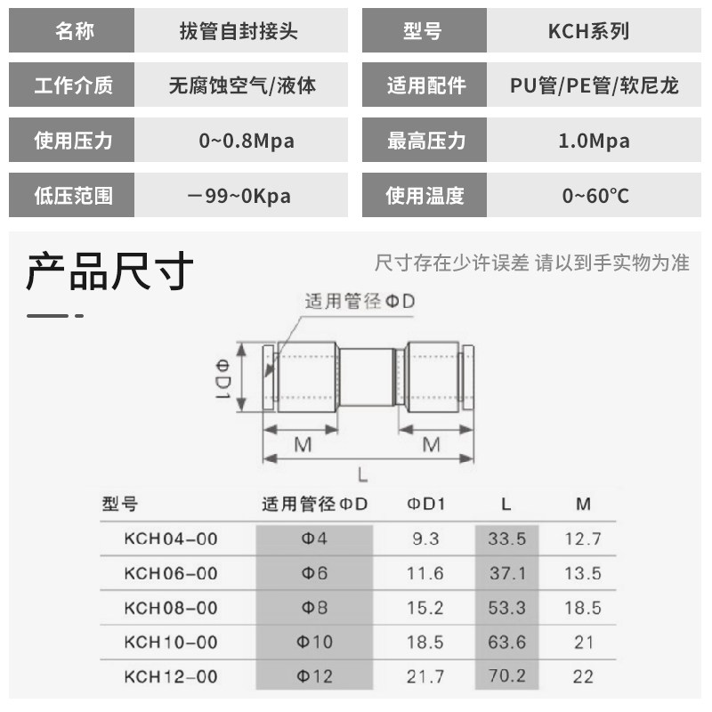 KCH Pneumatic Self-sealing Valve Quick Connector 04 06 08 10 12-00mm Bulkhead Bulkhead KCE