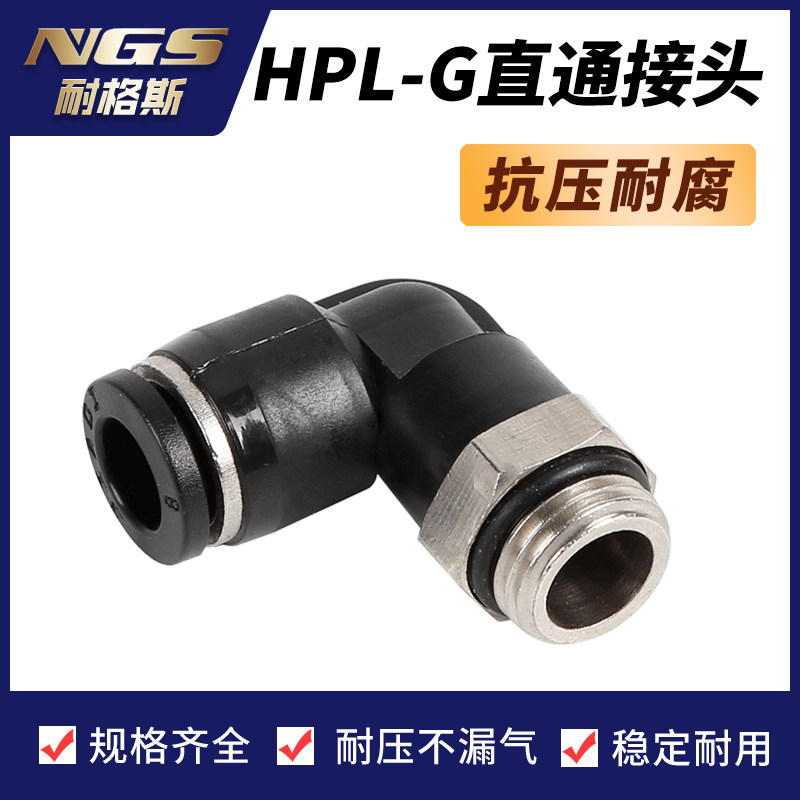 One Eighth G Threaded Seal Ring Nickel Plated Black Pneumatic Fast Air Tube Joint PL401