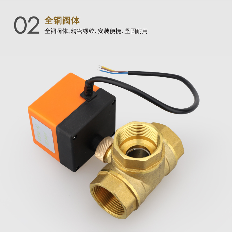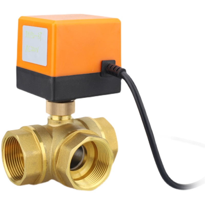 Miniature electric tee ball valve 220V24V12V copper ball valve one-control, two-control Ertong air conditioning ventilator coil