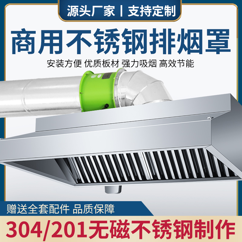 Stainless Steel Oil Smoke Hood Commercial Smoking Machine Purifier Fried Chicken Shop Kitchen Powerful Ventilator Smoke Exhaust Hood