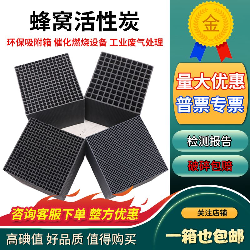 Honeycomb activated carbon block industrial waste gas treatment adsorption environmental protection box spray paint baking paint room 800 iodine special carbon brick