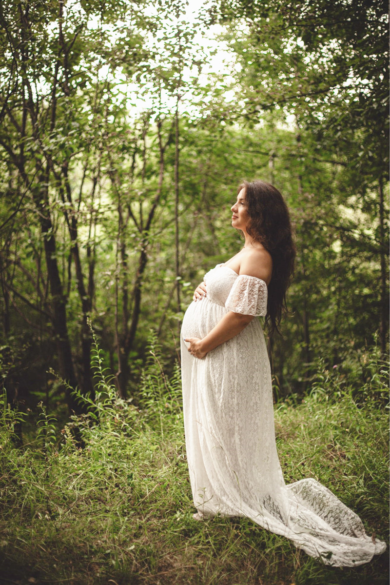 Speed Sale Through Lace Pregnant Woman Photo Costumes With Photo-lined Trailing Long Dresses Sexy Lotus Leaf Sleeve Write Real Clothes