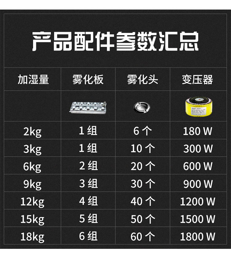 6 kg manual (20 atomized heads) 9 kg manual (30 atomized heads) 12 kg manual (40 atomized heads)
