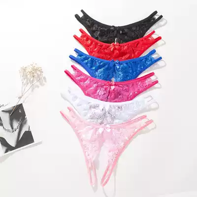 Large size sex underwear women can insert crotch underwear sexy low waist perspective lace non-trace thong thong thong