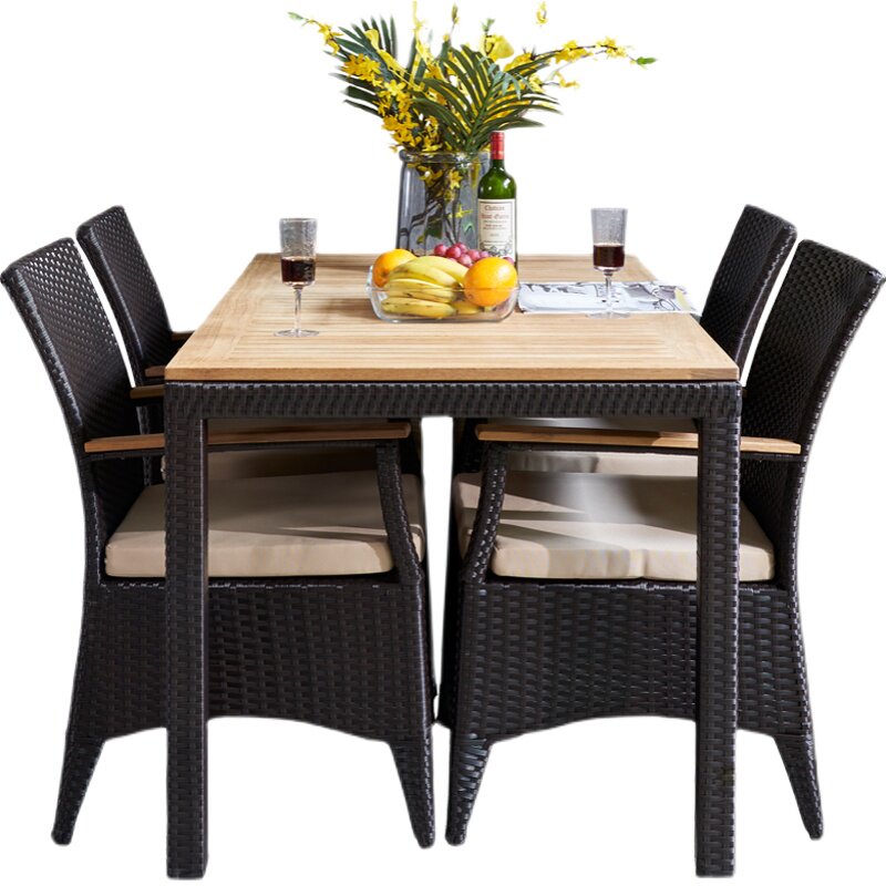 Outdoor rattan table and chair three-piece combination outdoor courtyard leisure teak dining table greenhouse living room balcony rattan chair