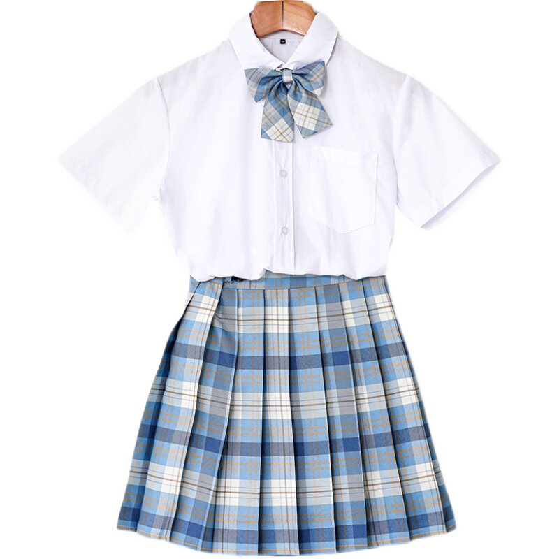 White short-sleeved shirt black shorts 117JK skirt metal badge gift box strap bag