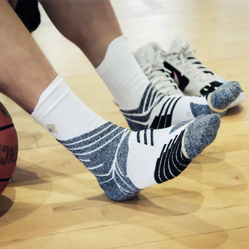 Left and right strength sports socks high tube actual combat professional training non-slip towel bottom summer breathable elite men's basketball socks