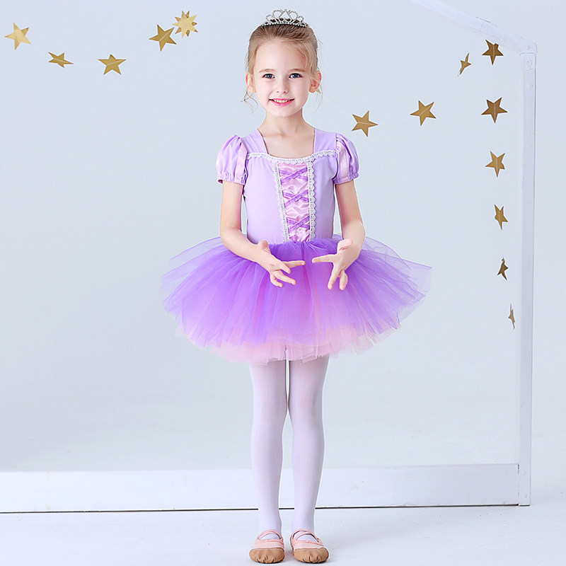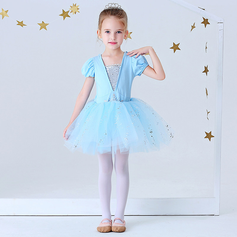 Girls ballet dance practice clothes dance costumes Frozen children's performance summer princess dress short-sleeved Aisha