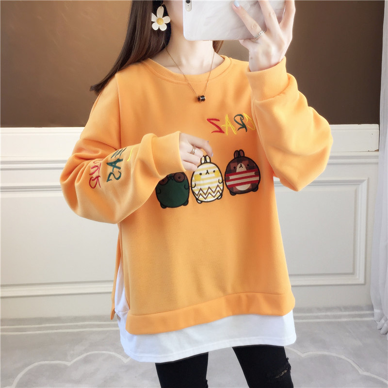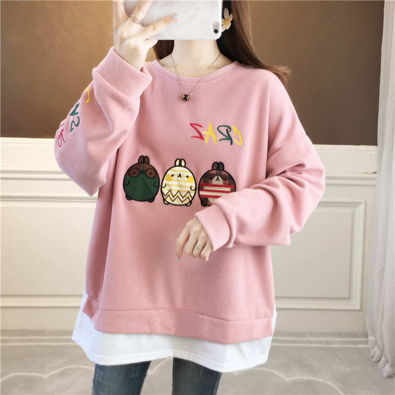 Fat MM Loose Large Size Gestation Woman Dress Spring Autumn Winter Korean Version Embroidered two vegling women with long version of blouse cover