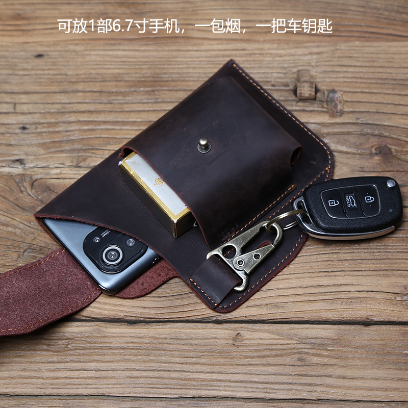 Retro men's waist bag first layer cowhide hanging bag leather crazy horse leather waist hanging mobile phone bag wearing belt vertical outdoor bag