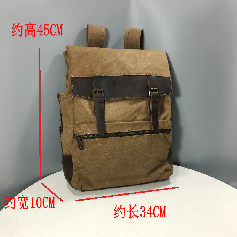 Foreign trade retro backpack crazy horse leather canvas men's backpack travel bag computer backpack student schoolbag male bag tail goods
