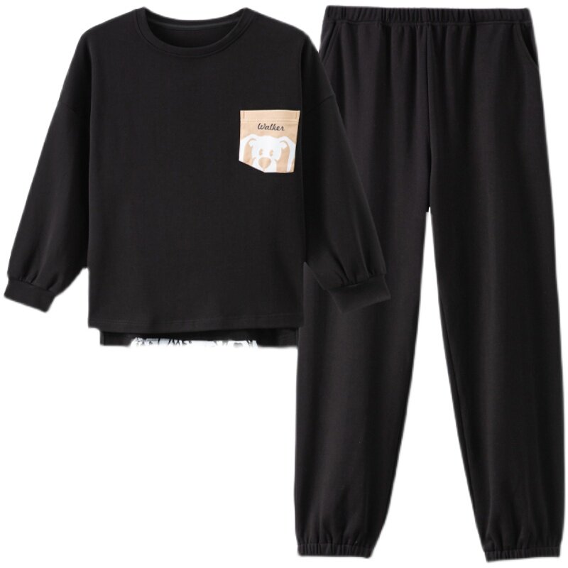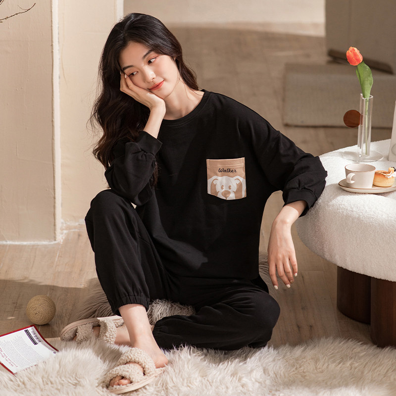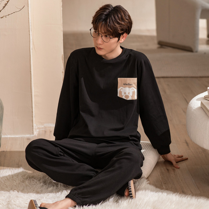 Spring and autumn pure cotton couple pajamas woman sleeve cartoon and wear Korean version of men's home dress cute new