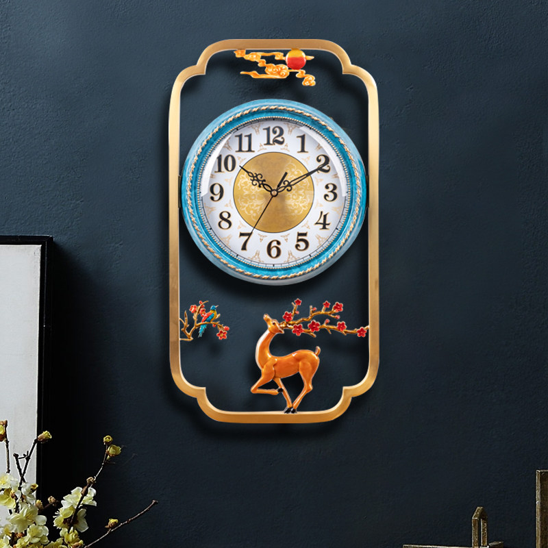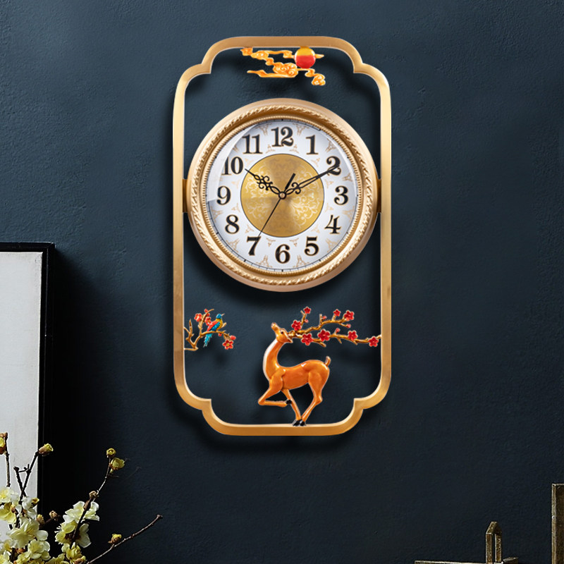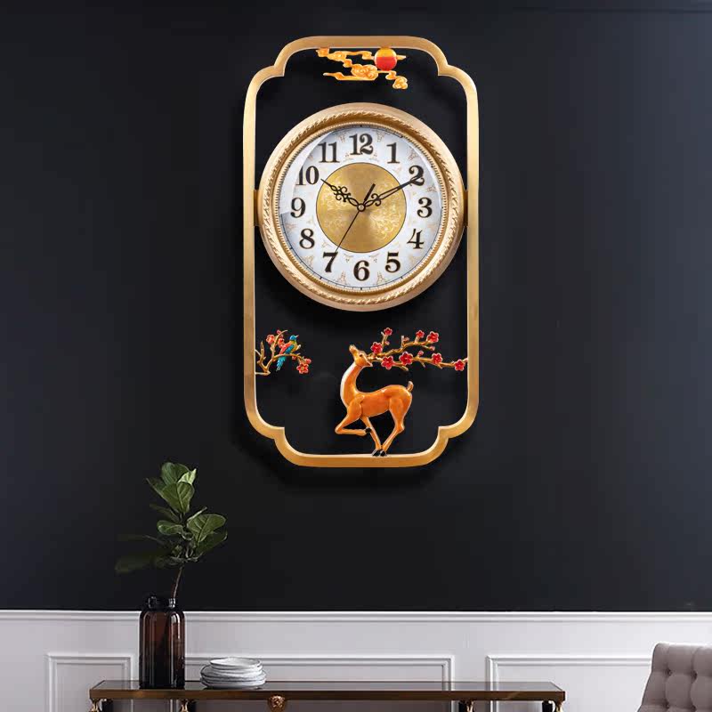 Townhouse pure copper wall clock living room New Chinese silent watch household light luxury decoration clock fashion atmospheric quartz clock