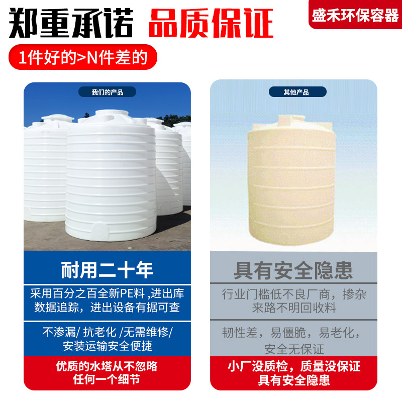Plastic water tower vertical beef tendon thickened Shenghe water storage tank food grade PE water storage tank storage bucket 5 tons 10 tons 60T