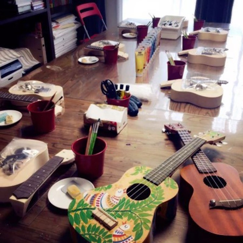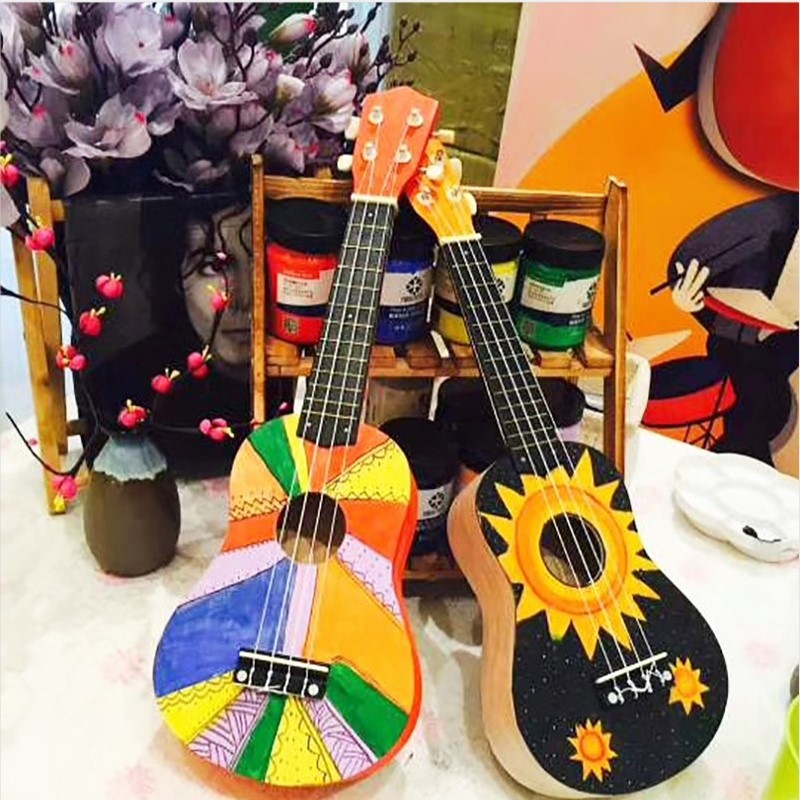 Assembly Yukriydiy homemade handmade material bag painted hand painted wooden graffiti small guitar wood-Taobao