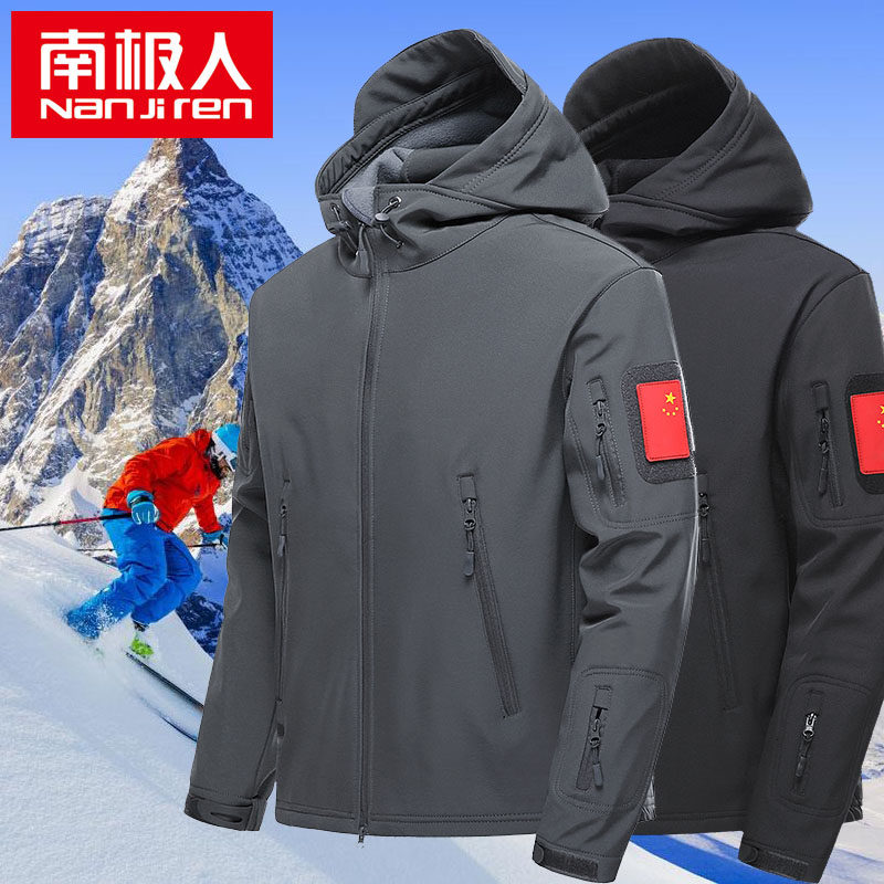 South Pole Anti-cold Tactical Assault Clothing Plus Suede Softshell Men Waterproof Winter Ski Fishing Mountaineering Suit Military Fan Jacket-Taobao