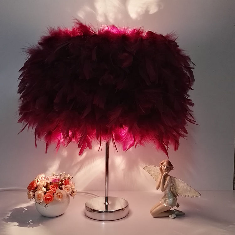 Feather table lamp bedroom bedside table lamp creative romantic simple modern night light wedding room warm decoration table lamp