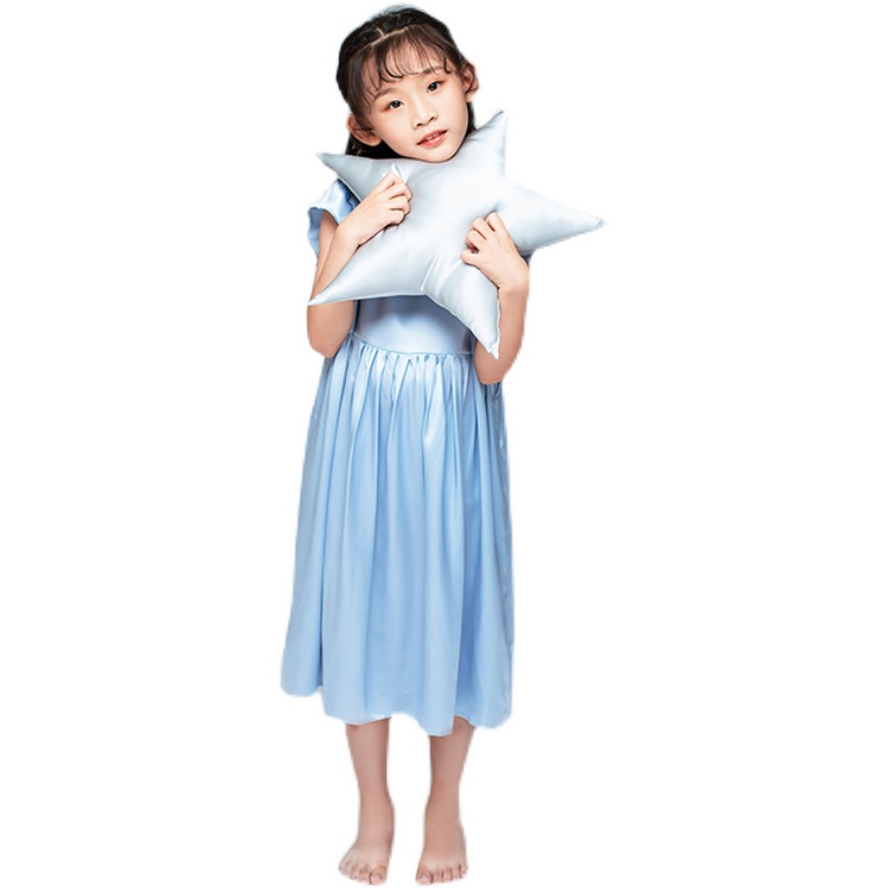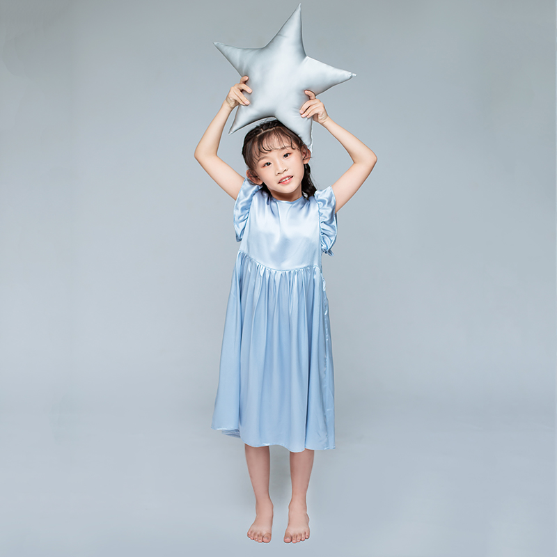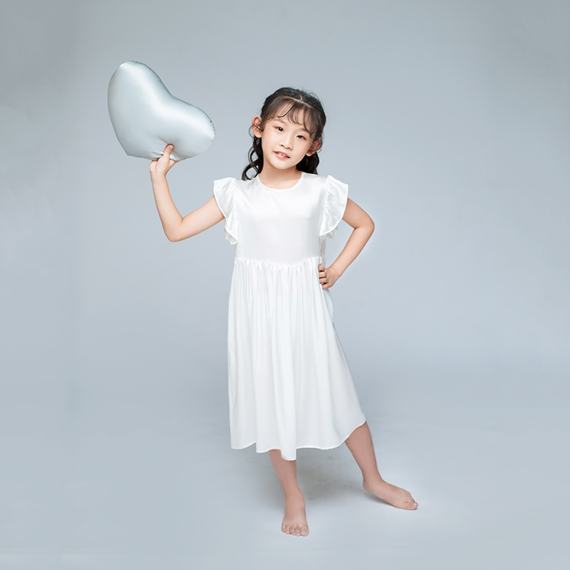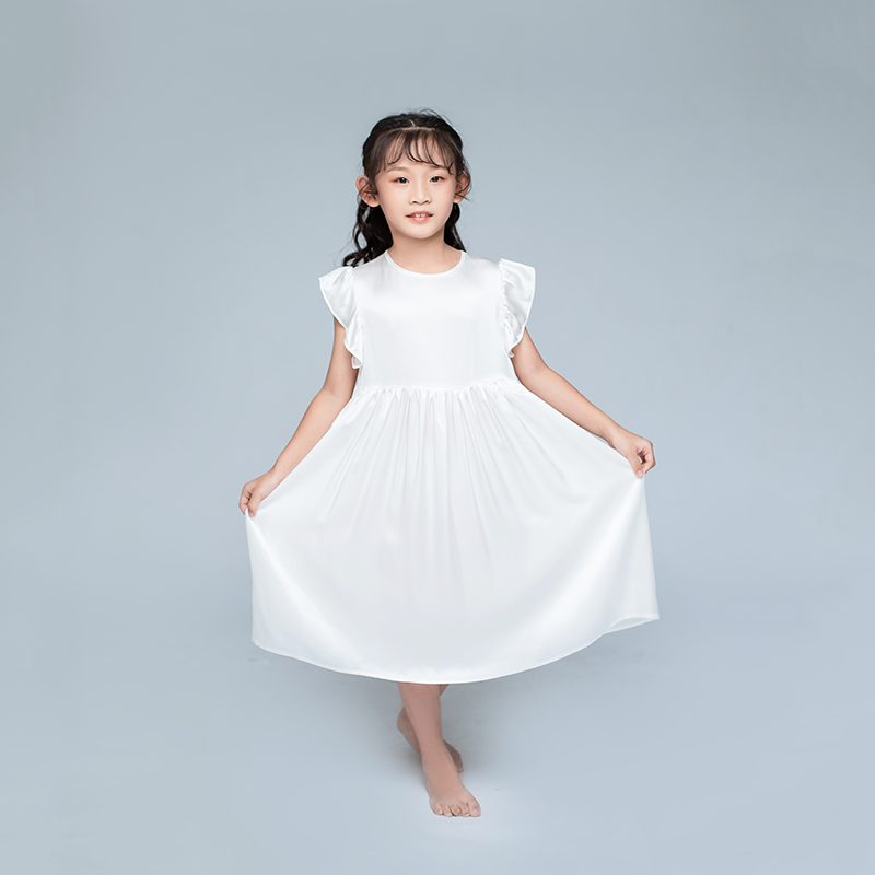 Cnsilk 100% Mulberry Silk Real Silk Sleeping Dress With Lotus Leaf Side Cuff Girl Princess Dresses Out of Home Skirt Foreign Dress