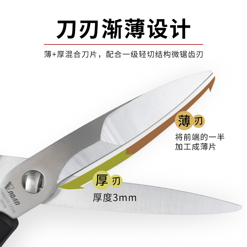 Japan Imported Kitchen Multifunction Scissors Powerful Fish Bone Chicken Bones Cut Stainless Steel Grilled Meat Cut Food Vegetable Cut for Home