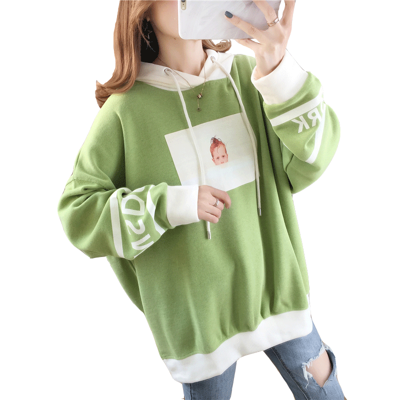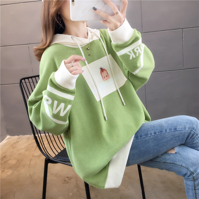 Fat MM Large Size Loose Gestation Woman Dress Spring Autumn Medium Long Version Long Sleeves Thick Cotton T Women's Blouse With Cap Jacket Fashion 2022