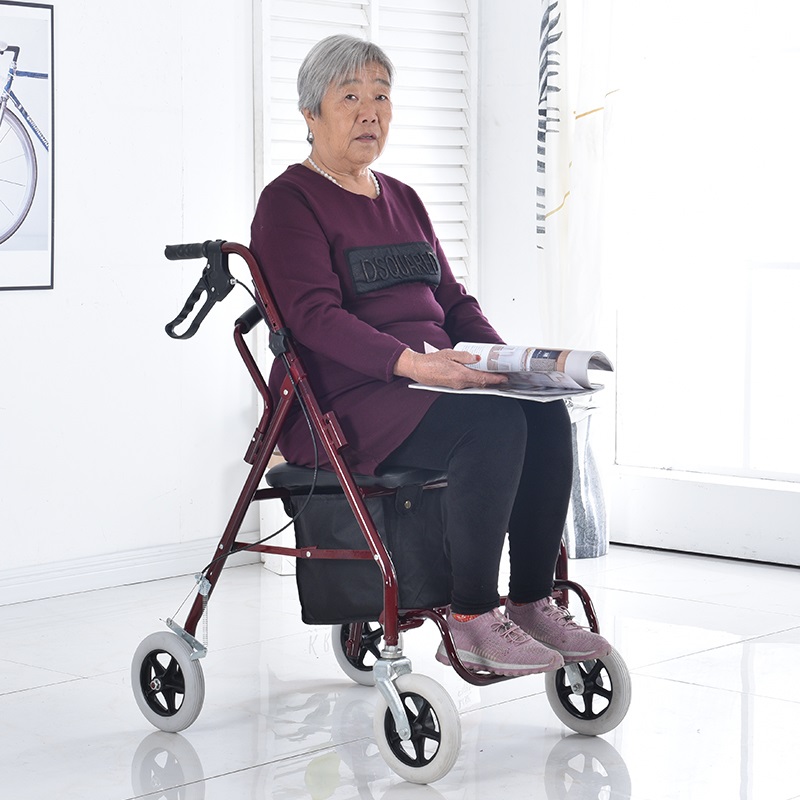 Elderly power-assisted trolley new elderly universal wheel armrest can sit on wheels to help walk and buy food small hand four-wheeler