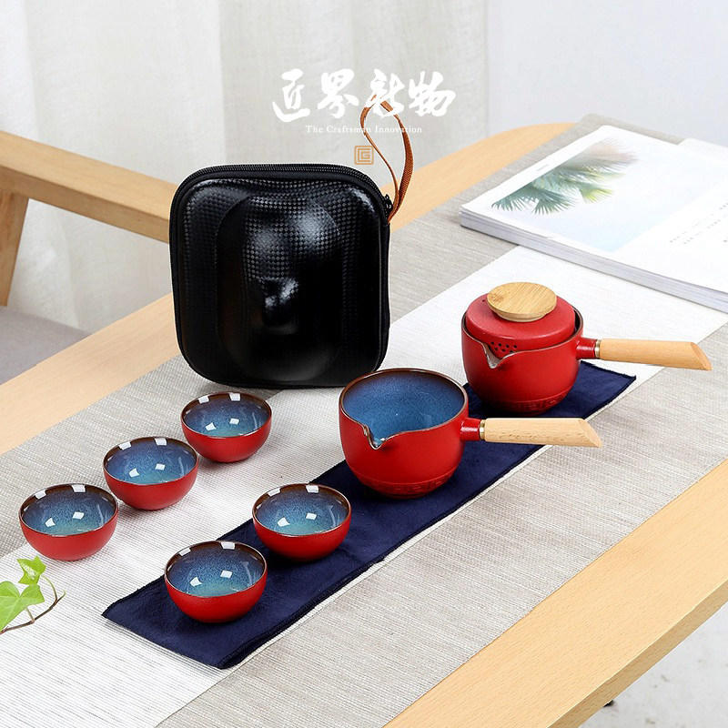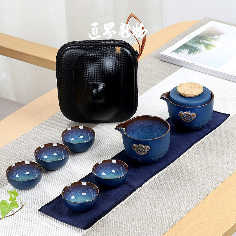 Side pot two cups _ tea cans (blue) side pot one pot five cups _ blue hand grab a pot and two cups _ tea cans (blue) hand grab a pot and a pot of five cups _ tea can (blue) side to the pot and two cups _ tea