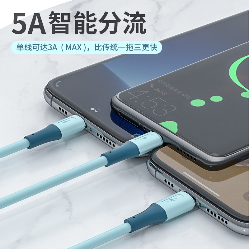 Original data line Three-in-one quick-charge application Apple Android mobile phone Huawei one drag triple charge wire machine Xiaomi triple head multifunction lengthened soft rubber oppo on-board short vivo universal