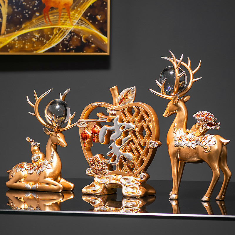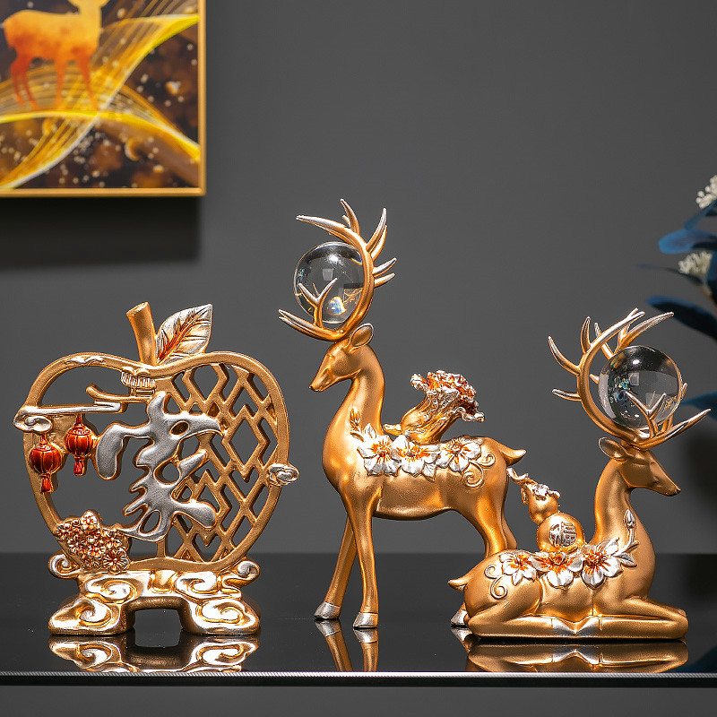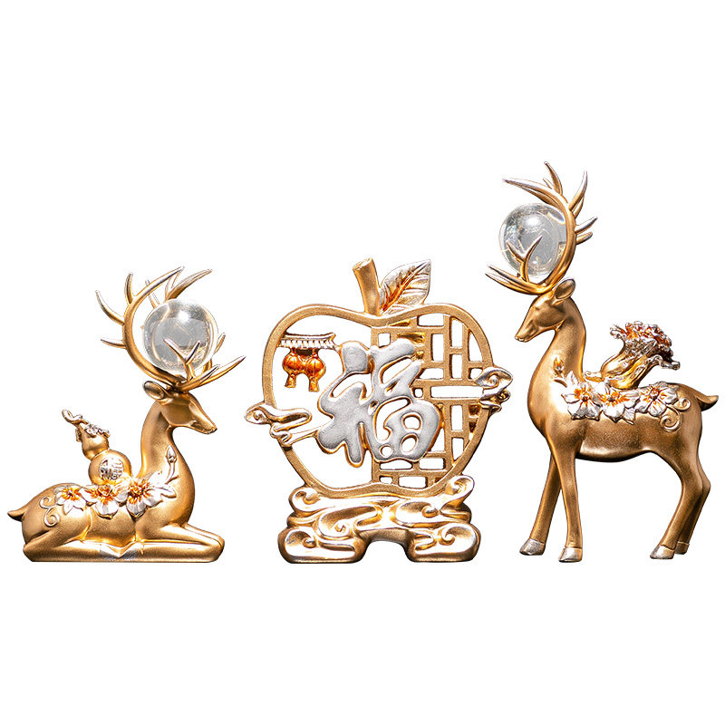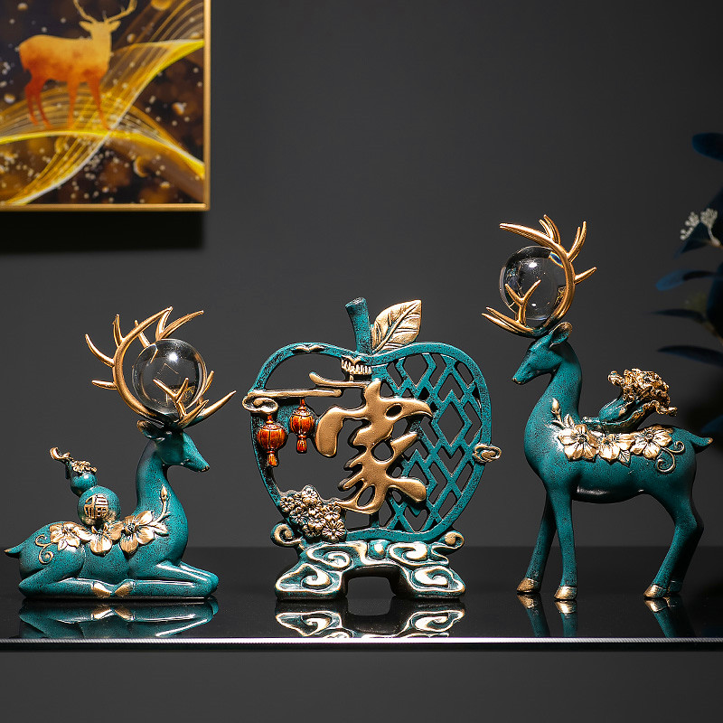 Apple Fu-trumpet Golden Apple home-small blue crystal ball deer pair-blue crystal ball Apple Fu three-piece set-blue crystal ball Apple home three-Blue Apple home-trumpet