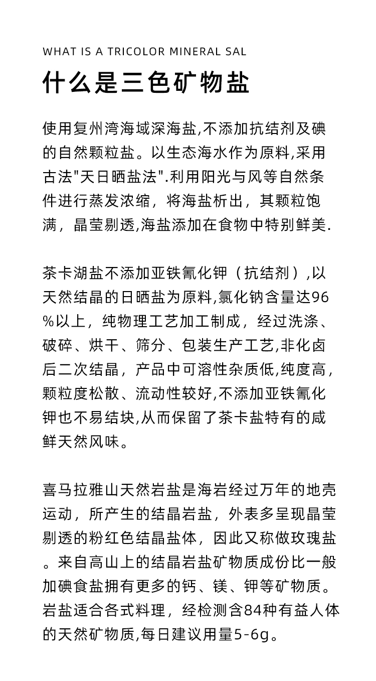 Three-color Mineral Salt Restate Bay Deep Sea Salt Hei Maraja Rose Salt Qinghai Lake Salt Mine Material Export