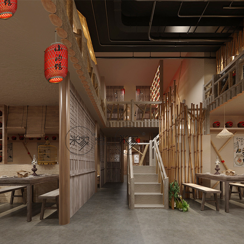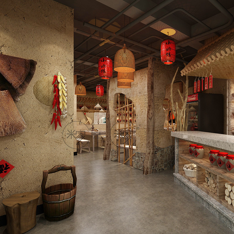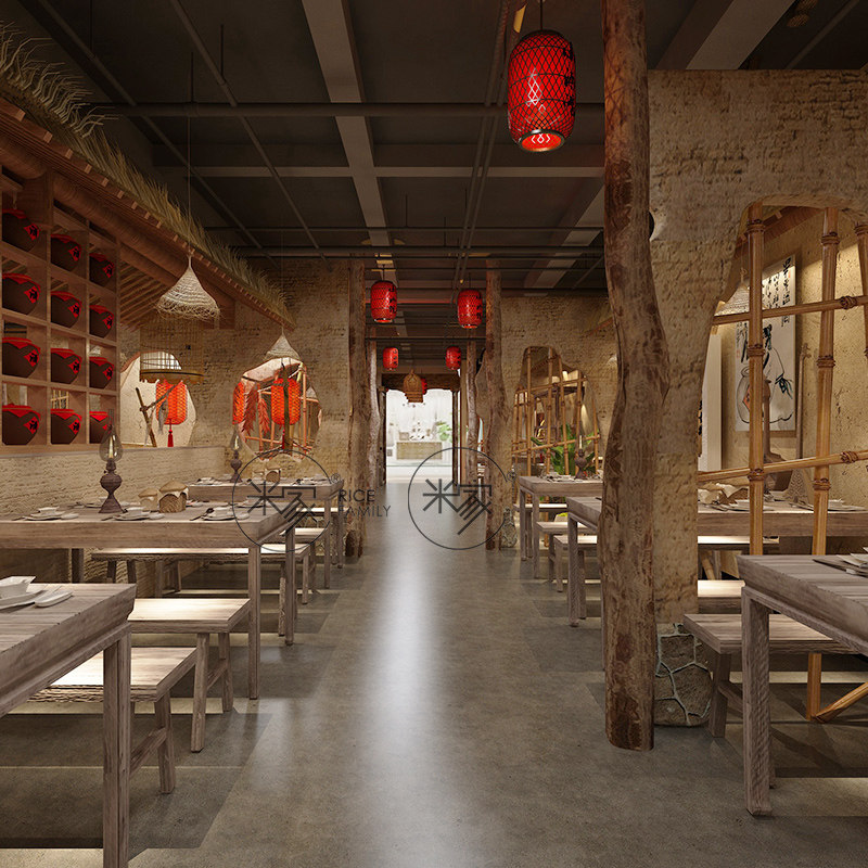 Net Red Rivers & Rivers Barbecue shop Furnishing Fire Pot Shop Catering Shop Paving Repair Design Solid Shop Hotel Renovation Design