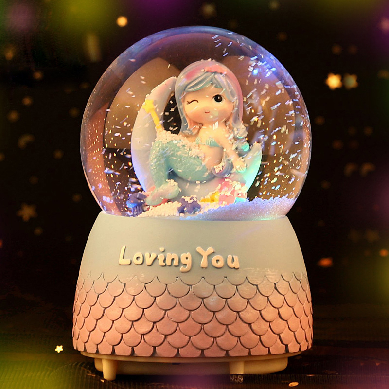 Medium size cat with manual snowfall Cat medium size with automatic snowfall Cat large size with automatic snowfall Cat large size with automatic snowfall with internal rotation Mermaid lying down Large size with automatic snowfall Mermaid sitting in large size with automatic snowfall mermaid